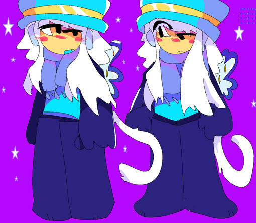 most of the time, i dont really bother about the wings, or hair.. sometimes the Wind is just hitting that Scalp ! if you do, you can literally draw them either bald or with hair, your pick!one more fun fact, the headphones theyre wearing has cat ears on them, but the hat is hiding it....