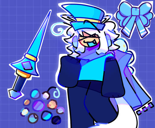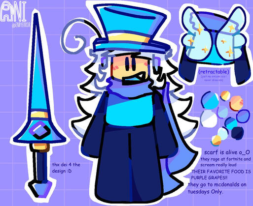 clematis is an octopus hybrid known to mask their intelligence through false stupidity. however, they rarely ever leave this facade of goofiness! they secretly like just playing around :Pclematis lurks in the deep empty sea, however will tend to float up to the surface once in a while to make new discoveries.they’re partly inspired by the mesmer from subnautica! i’d like to think they can put their prey in a trance and lure them in like mesmers!!